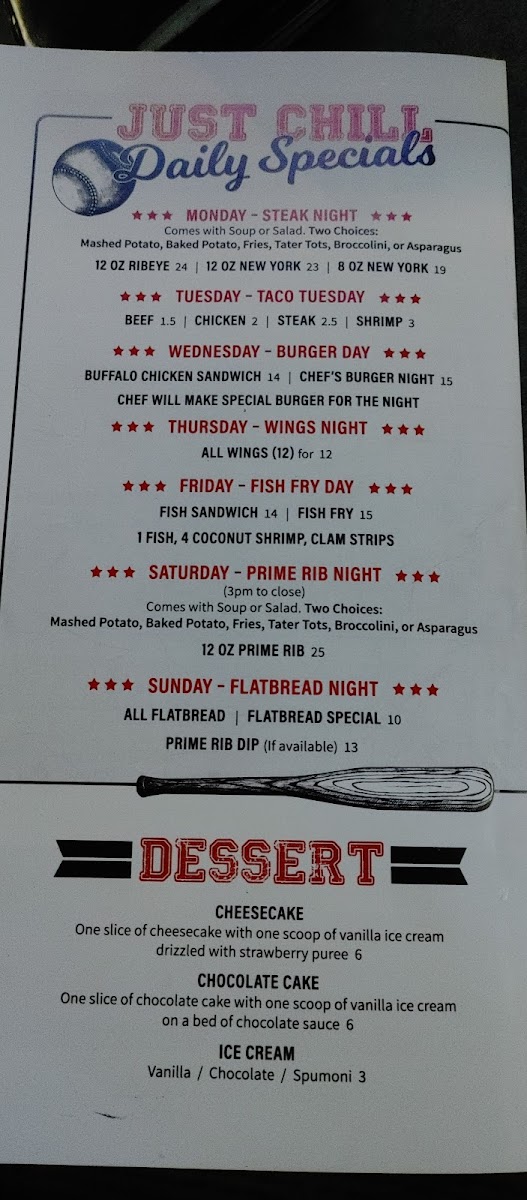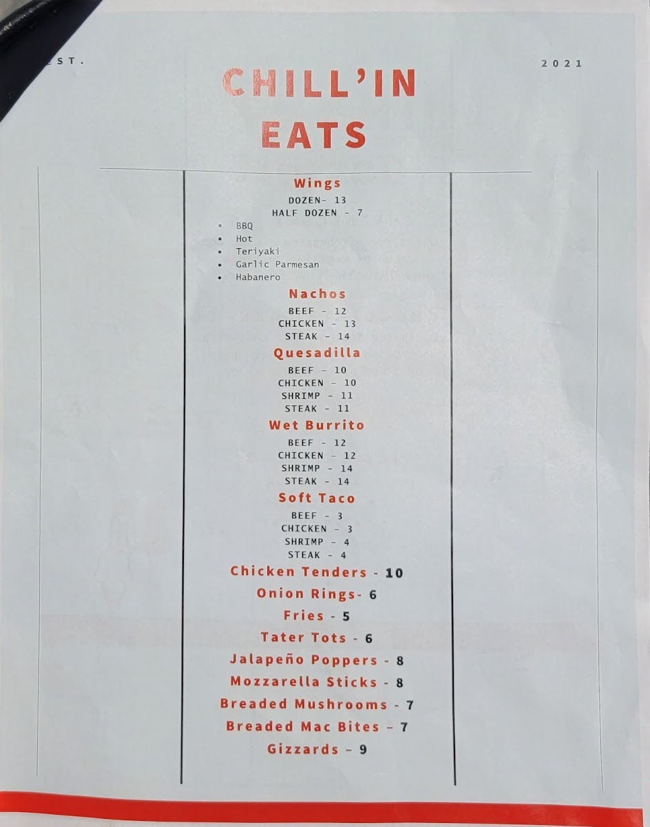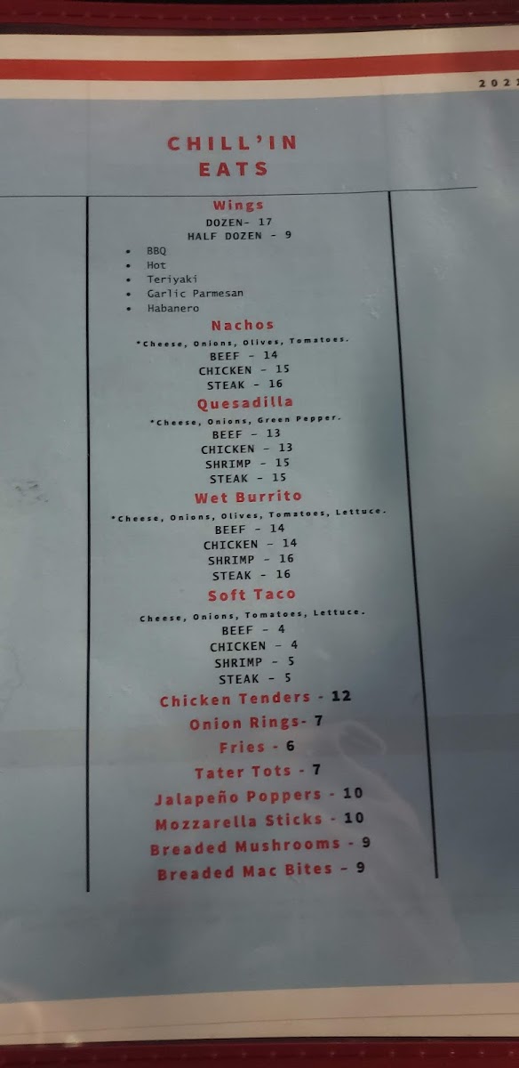 Just Chill Pub & Grill Menu